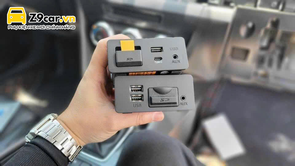 - Phần cứng hộp đầu đọc USB (HUB) có hỗ trợ Apple Carplay và kèm theo 2 rắc tín hiệu chuyên biệt dành riêng để kết nối với màn hình xe ô tô