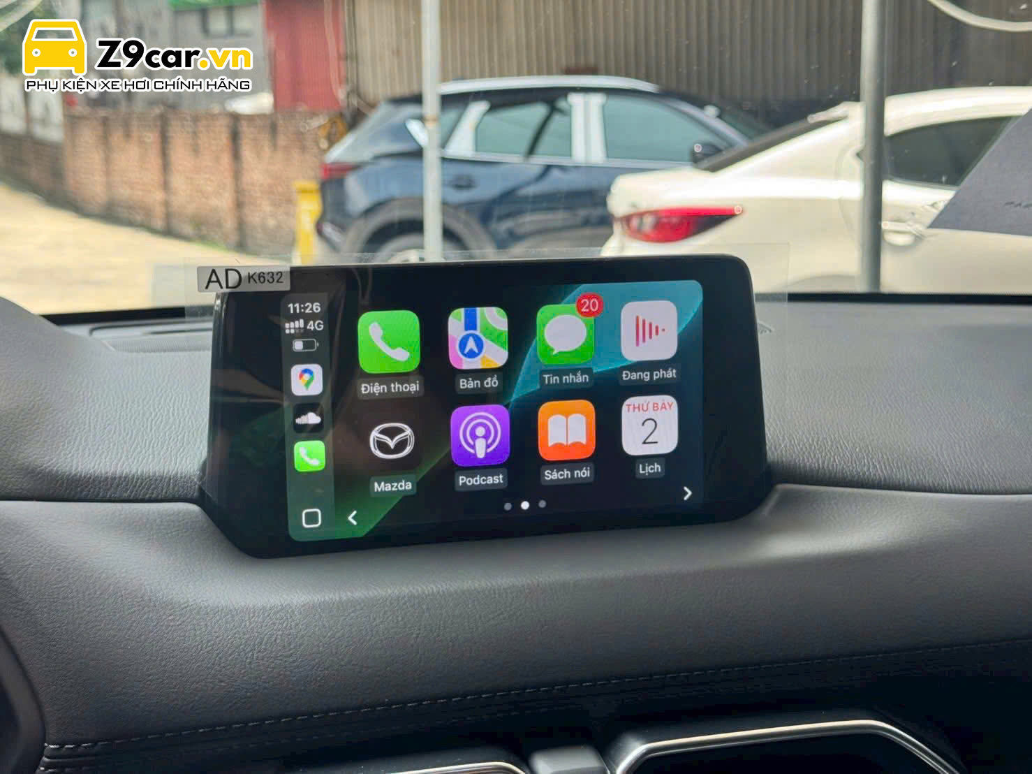 Kit Apple Carplay For Mazda hỗ trợ đồng bộ màn hình iphone sẽ hiển thị lên màn hình xe ô tô để tiện cho người lái xe theo dõi các thông số, thông tin liên lạc, chỉ đường….