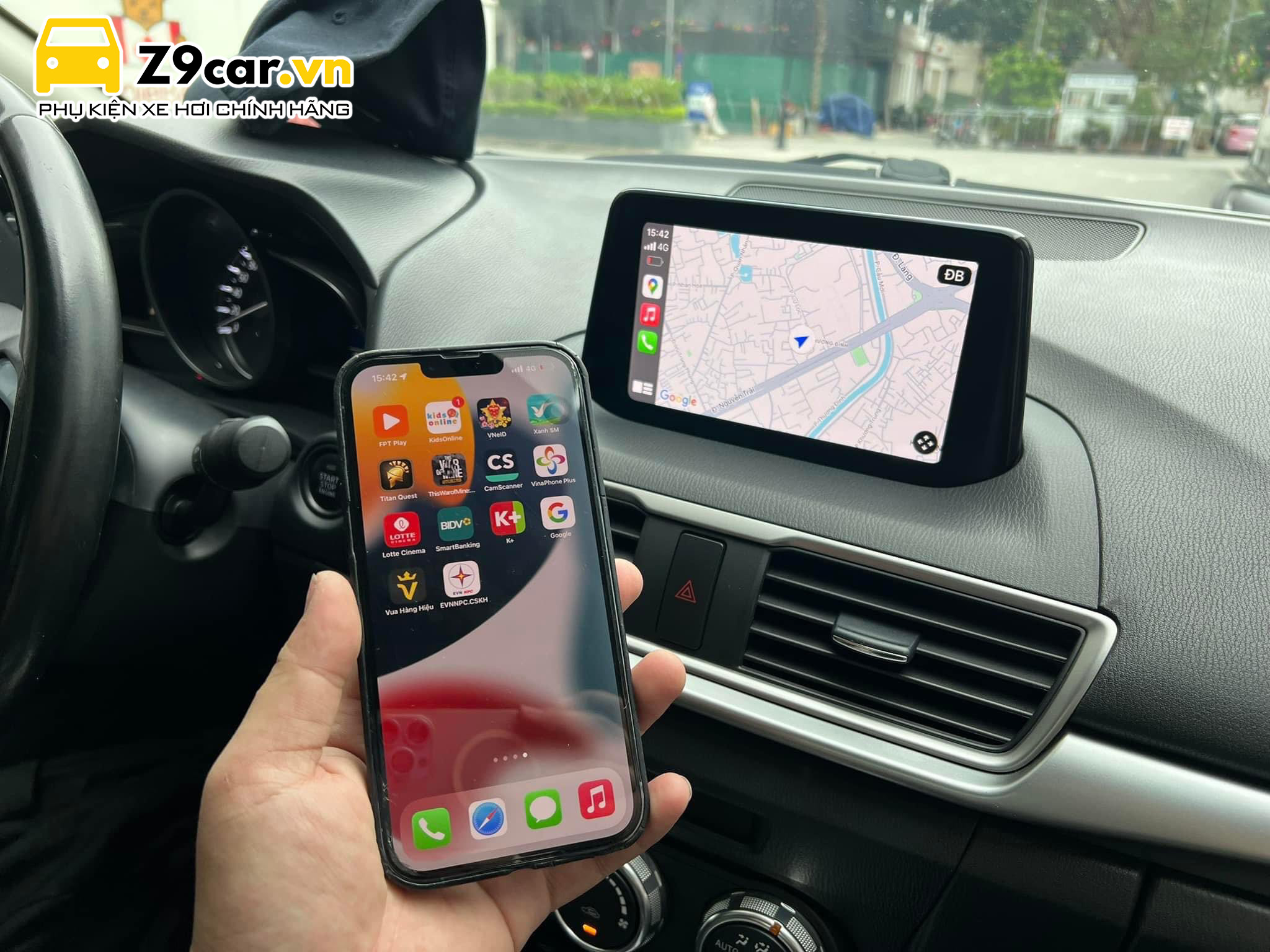 - Apple Carplay hoạt động khi cắm cable kết nối từ iphone vào hộp USB (HUB)