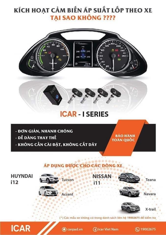 Cảm biến áp suất lốp ICAR I1 là dòng cảm biến thế hệ mới hiển thị lên màn hình theo xe qua giao tiếp ODB-II