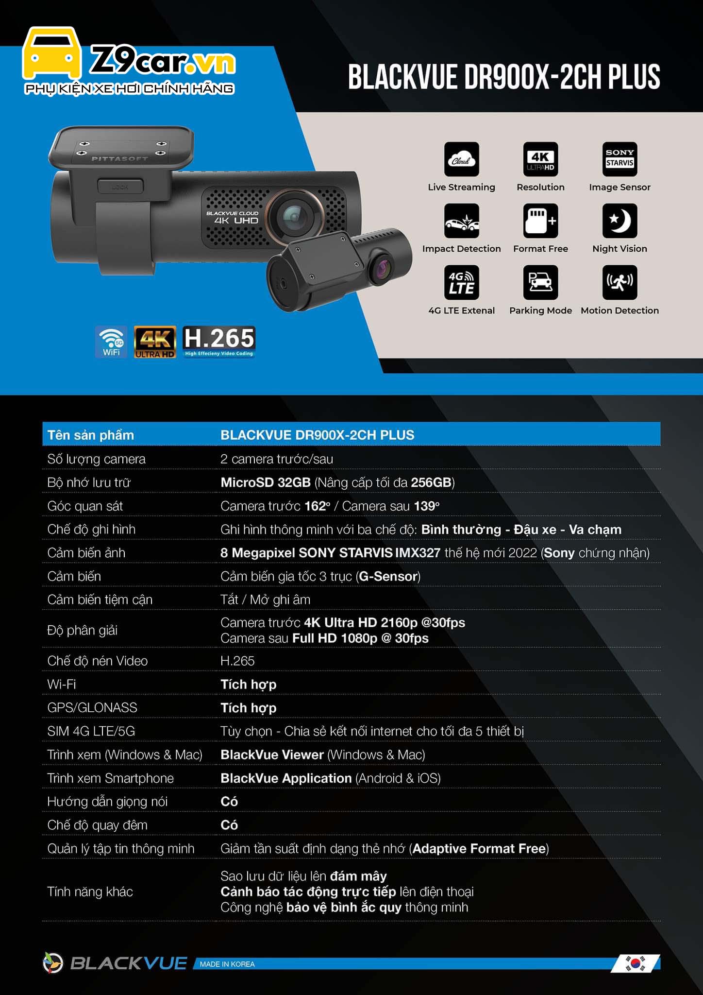 Camera hành trình Blackvue DR900X-2CH Plus 4K