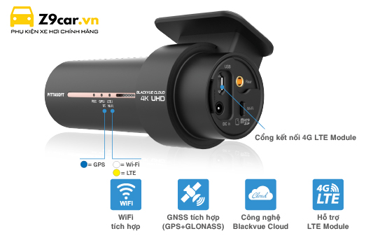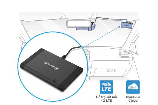 - Blackvue DR900X-2CH PLUS tương tích với phụ kiện CM100 LTE nhỏ gọn, gắn Nano SIM 4G LTE vào phụ kiện để cung cấp internet cho camera.