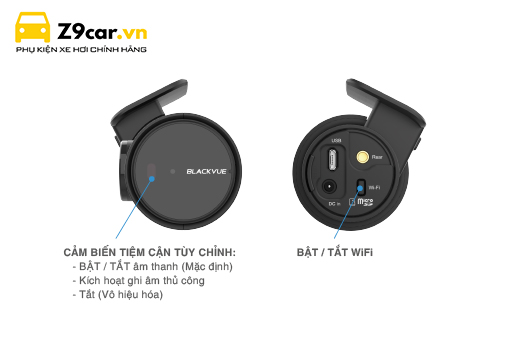 - Wifi: Dùng để kết nối Blackvue với điện thoại thông minh giúp xem video trong khoảng cách 15m, đồng thời có thể sử dụng wifi này để truy cập internet.