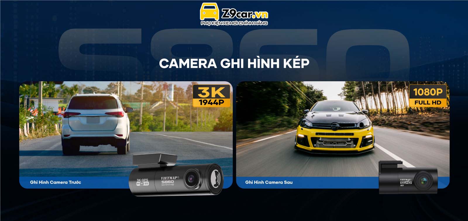 Camera hành trình VIETMAP S860 với camera được nâng cấp từ 2K 1440p lên độ phân giải 3K 1944p siêu nét kết hợp cùng camera sau Full HD 1080p ghi lại chi tiết toàn bộ hành trình trước & sau xe cùng với thông tin tọa độ và tốc độ.