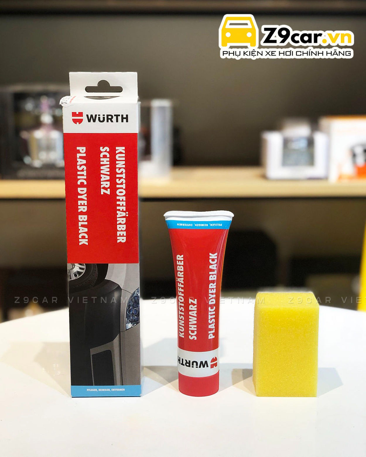 Tuýp Phục hồi nhựa đen Wurth Plastic Dyer Black dùng để phục hồi phần nhựa đen đã bị bạc màu, lão hóa, mốc trắng do ảnh hưởng của môi trường và thời tiết.