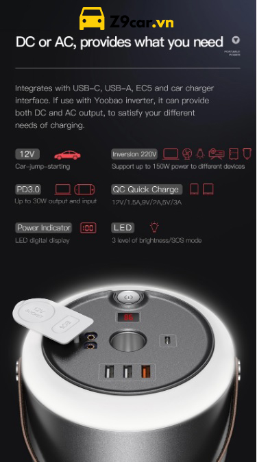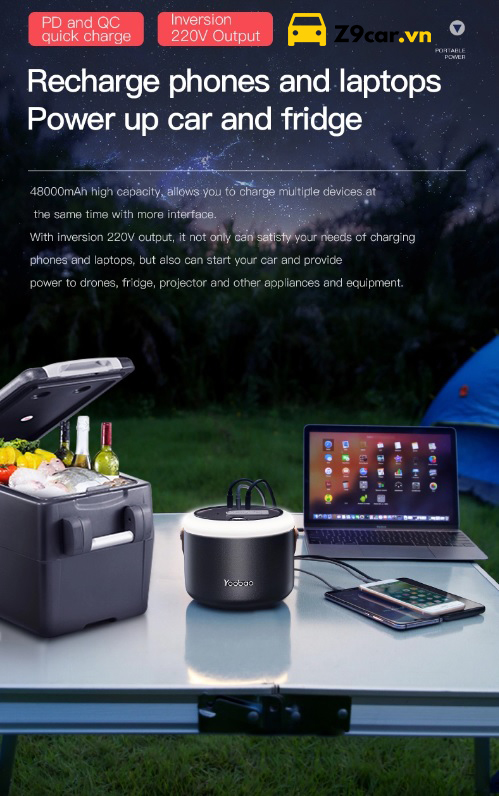 Với dung lượng pin lên tới 48000 mAh cùng đầu ra 220V không chỉ để sạc điện thoại của bạn mà còn có thể dùng cho máy tính xách tay, tủ lạnh, máy chiếu cùng các thiết bị điện khác