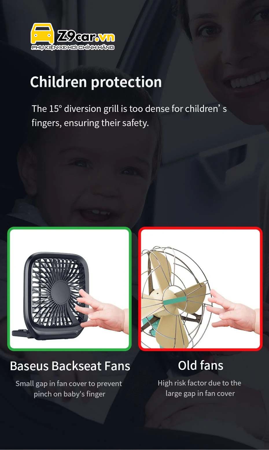Thiết kế bảo vệ an toàn với trẻ em. Không sợ trẻ em chạm tay vào cánh quạt gây tổn thương cơ thể