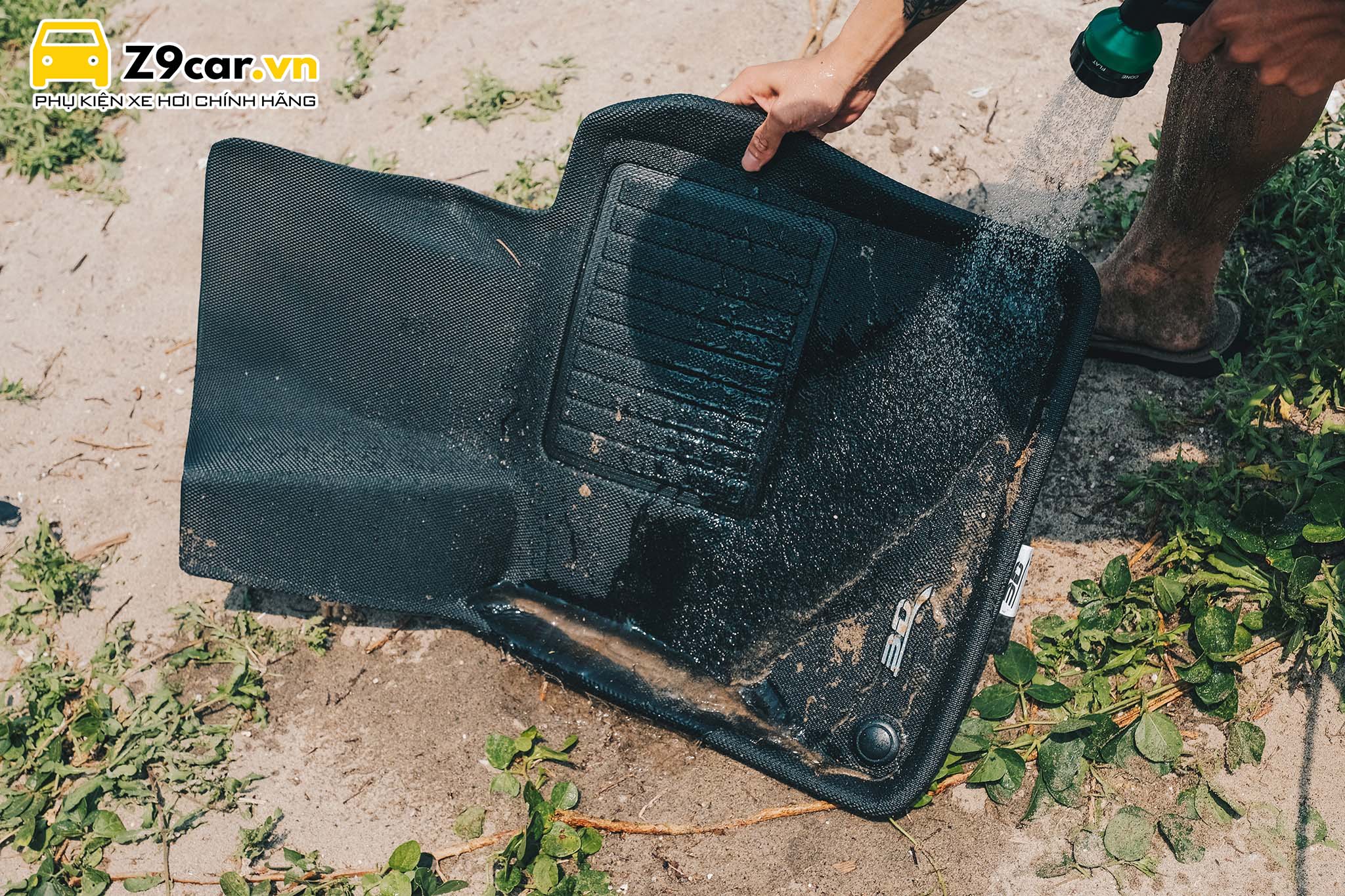 Chống nước và chống trượt, mặt dưới dính bám vào sàn xe đảm bảo thảm không bị xô lệch